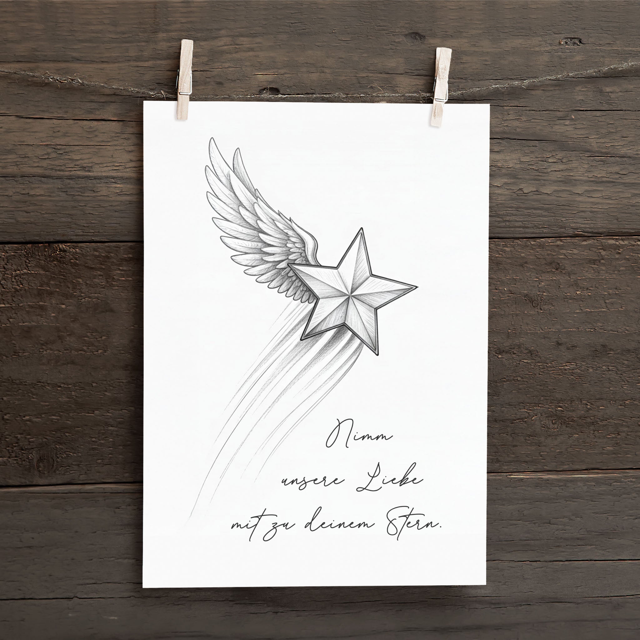 Karte Sternenkind "Nimm unsere Liebe mit zu deinem Stern" Kondolenzkarte / Trauerkarte / Beileidskarte Fehlgeburt Totgeburt SternenkindKarte Sternenkind "Nimm unsere Liebe mit zu deinem Stern" Kondolenzkarte / Trauerkarte / Beileidskarte Fehlgeburt Totgeburt Sternenkind- Regulärer Preis