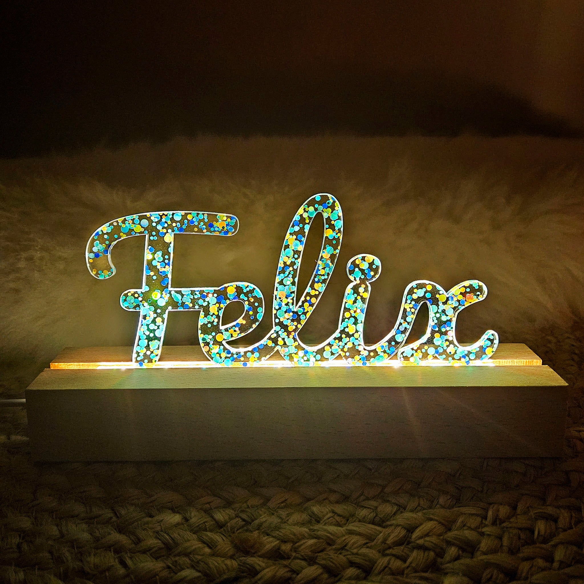 Großes, personalisiertes Nachtlicht Glitter-Konfetti türkis lila weiß, LED Lampe mit Wunschname personalisiertGroßes, personalisiertes Nachtlicht Glitter-Konfetti türkis lila weiß, LED Lampe mit Wunschname personalisiert- Regulärer Preis