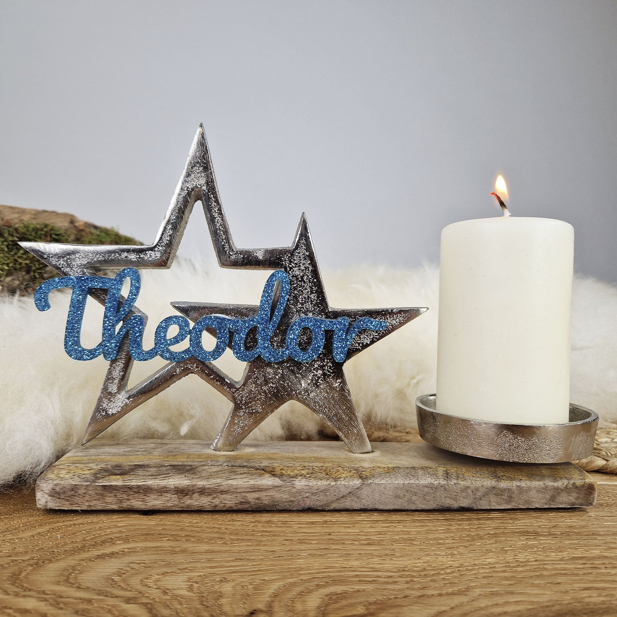 Personalisierter, großer Kerzenhalter "Sterne" mit türkisblauer Schrift, Kerzenständer Kommunionkerze, Taufkerze,Trauerkerze SternenkindPersonalisierter, großer Kerzenhalter "Sterne" mit türkisblauer Schrift, Kerzenständer Kommunionkerze, Taufkerze,Trauerkerze Sternenkind- Regulärer Preis