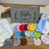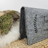 Hochwertige, personalisierte Windeltasche aus Filz. Mit graviertem Wunschnamen und ggf. einer zweiten Zeile. Wir setzen das um, was du haben magst...