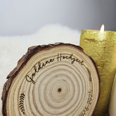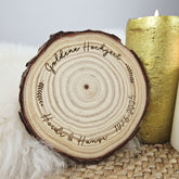 Personalisierte Kerzenteller Baumscheibe, Kerzenuntersetzer mit Wunschgravur, Hochzeit Kommunion Taufe Geburtstag Silberhochzeit