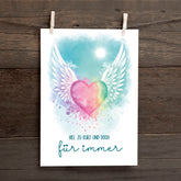Wir drucken mit zertifizierten, hochwertigen Tinten auf nachhaltiges Naturpapier. Für unsere Karten und Kunstdrucke verwenden wir hochwertigen Künstler-Naturkarton mit natürlichem, weichem, warmem Weißton und einem Papiergewicht von 300g/m².