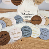 18 Meilensteine sind universal und auf die Besonderheiten nach einer Frühgeburt angepasst, 2 Meilensteine stellen wir individuell her, passend zum Set natürlich.