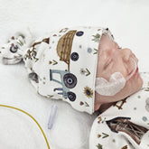Adaptive Frühchen Mütze mit Zugangsöffnung "Bauernhof", mitwachsende Wickelmütze