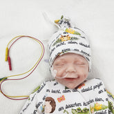 Adaptive Frühchen Mütze mit Zugangsöffnung "klein aber perfekt" mitwachsende Wickelmütze