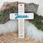 Dieses Taufkreuz / Segnungskreuz stellen wir individuell für dich hier vor Ort her und gestalten es vollumfänglich nach deinen Wünschen (Wunschname, Wunschtext).