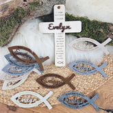 Die mit abgebildeten Dekorationsartikel (z.B. Fische, Karte) sind kein Bestandteil des Angebotes. Dieses Angebot umfasst das Holzkreuz mit Personalisierung nach deinen Wünschen. Du kannst aber die Fische und Karten separat und passend zu diesem Holzkreuz in unserem Shop erwerben. Gerne stellen wir für dich alles so zusammen, wie du es zusammen haben möchtest. Auch Sonderwünsche, die technisch machbar sind, erfüllen wir gerne und sie sind für uns ein Selbstverständlichkeit.
