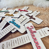 Personalisiertes Kreuz zu Taufe, Segnung - 3D Holzkreuz mit Namen & Wunschspruch