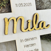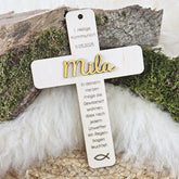 Personalisiertes Kreuz zu Taufe, Segnung - 3D Holzkreuz mit Namen & Wunschspruch