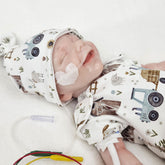 Unsere Frühchenkollektion wurde in Zusammenarbeit mit Ärzten und Pflegepersonal entwickelt und im Alltag erprobt. Unser Hauptaugenmerk lag nicht nur auf der Passform, sondern auch auf den pflegerischen und medizinischen Anforderungen. Mit unseren einfach zu handhabenden Schnitten ist es den Frühcheneltern möglich, die Pflege ihres Babys schon zu einem sehr frühen Zeitpunkt zu übernehmen. Durch die frühe Versorgung durch die Eltern kann viel schneller eine emotionale Bindung aufgebaut/ intensiviert werden, die das Risiko von Entwicklungsdefiziten beim Baby reduziert und traumatische Erfahrungen auf elterlicher Seite minimiert.