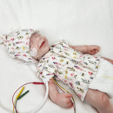 Unsere Frühchenkollektion wurde in Zusammenarbeit mit Ärzten und Pflegepersonal entwickelt und im Alltag erprobt. Unser Hauptaugenmerk lag nicht nur auf der Passform, sondern auch auf den pflegerischen und medizinischen Anforderungen. Mit unseren einfach zu handhabenden Schnitten ist es den Frühcheneltern möglich, die Pflege ihres Babys schon zu einem sehr frühen Zeitpunkt zu übernehmen. Durch die frühe Versorgung durch die Eltern kann viel schneller eine emotionale Bindung aufgebaut/ intensiviert werden, die das Risiko von Entwicklungsdefiziten beim Baby reduziert und traumatische Erfahrungen auf elterlicher Seite minimiert.