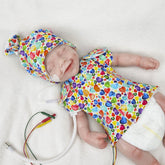 Unsere Frühchenkollektion wurde in Zusammenarbeit mit Ärzten und Pflegepersonal entwickelt und im Alltag erprobt. Unser Hauptaugenmerk lag nicht nur auf der Passform, sondern auch auf den pflegerischen und medizinischen Anforderungen. Mit unseren einfach zu handhabenden Schnitten ist es den Frühcheneltern möglich, die Pflege ihres Babys schon zu einem sehr frühen Zeitpunkt zu übernehmen. Durch die frühe Versorgung durch die Eltern kann viel schneller eine emotionale Bindung aufgebaut/ intensiviert werden, die das Risiko von Entwicklungsdefiziten beim Baby reduziert und traumatische Erfahrungen auf elterlicher Seite minimiert.