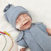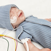 Unsere Frühchenkollektion wurde in Zusammenarbeit mit Ärzten und Pflegepersonal entwickelt und im Alltag erprobt. Unser Hauptaugenmerk lag nicht nur auf der Passform, sondern auch auf den pflegerischen und medizinischen Anforderungen. Mit unseren einfach zu handhabenden Schnitten ist es den Frühcheneltern möglich, die Pflege ihres Babys schon zu einem sehr frühen Zeitpunkt zu übernehmen. Durch die frühe Versorgung durch die Eltern kann viel schneller eine emotionale Bindung aufgebaut/ intensiviert werden, die das Risiko von Entwicklungsdefiziten beim Baby reduziert und traumatische Erfahrungen auf elterlicher Seite minimiert.