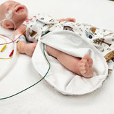 Unsere Frühchenkollektion wurde in Zusammenarbeit mit Ärzten und Pflegepersonal entwickelt und im Alltag erprobt. Unser Hauptaugenmerk lag nicht nur auf der Passform, sondern auch auf den pflegerischen und medizinischen Anforderungen. Mit unseren einfach zu handhabenden Schnitten ist es den Frühcheneltern möglich, die Pflege ihres Babys schon zu einem sehr frühen Zeitpunkt zu übernehmen. Durch die frühe Versorgung durch die Eltern kann viel schneller eine emotionale Bindung aufgebaut/ intensiviert werden, die das Risiko von Entwicklungsdefiziten beim Baby reduziert und traumatische Erfahrungen auf elterlicher Seite minimiert.
