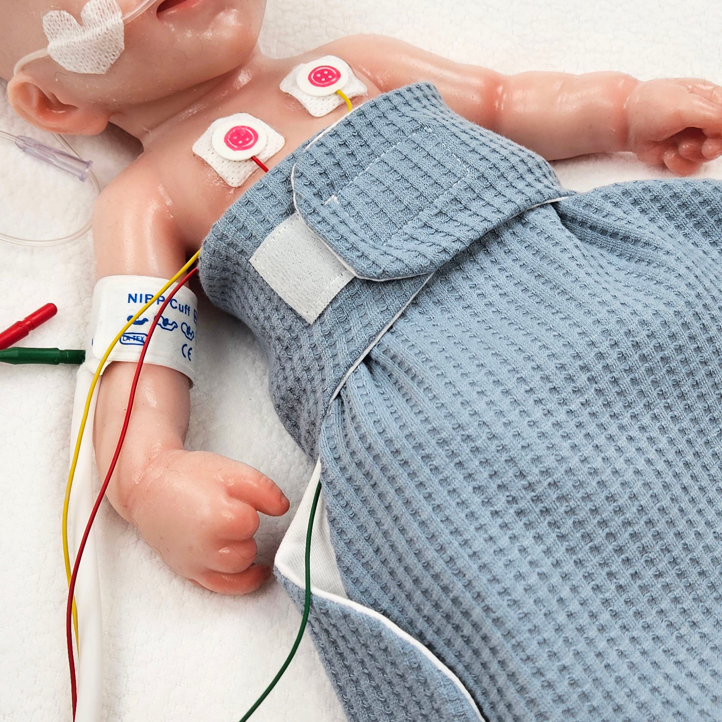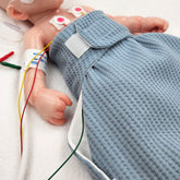 Unsere Frühchenkollektion wurde in Zusammenarbeit mit Ärzten und Pflegepersonal entwickelt und im Alltag erprobt. Unser Hauptaugenmerk lag nicht nur auf der Passform, sondern auch auf den pflegerischen und medizinischen Anforderungen. Mit unseren einfach zu handhabenden Schnitten ist es den Frühcheneltern möglich, die Pflege ihres Babys schon zu einem sehr frühen Zeitpunkt zu übernehmen. Durch die frühe Versorgung durch die Eltern kann viel schneller eine emotionale Bindung aufgebaut/ intensiviert werden, die das Risiko von Entwicklungsdefiziten beim Baby reduziert und traumatische Erfahrungen auf elterlicher Seite minimiert.