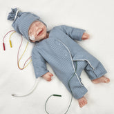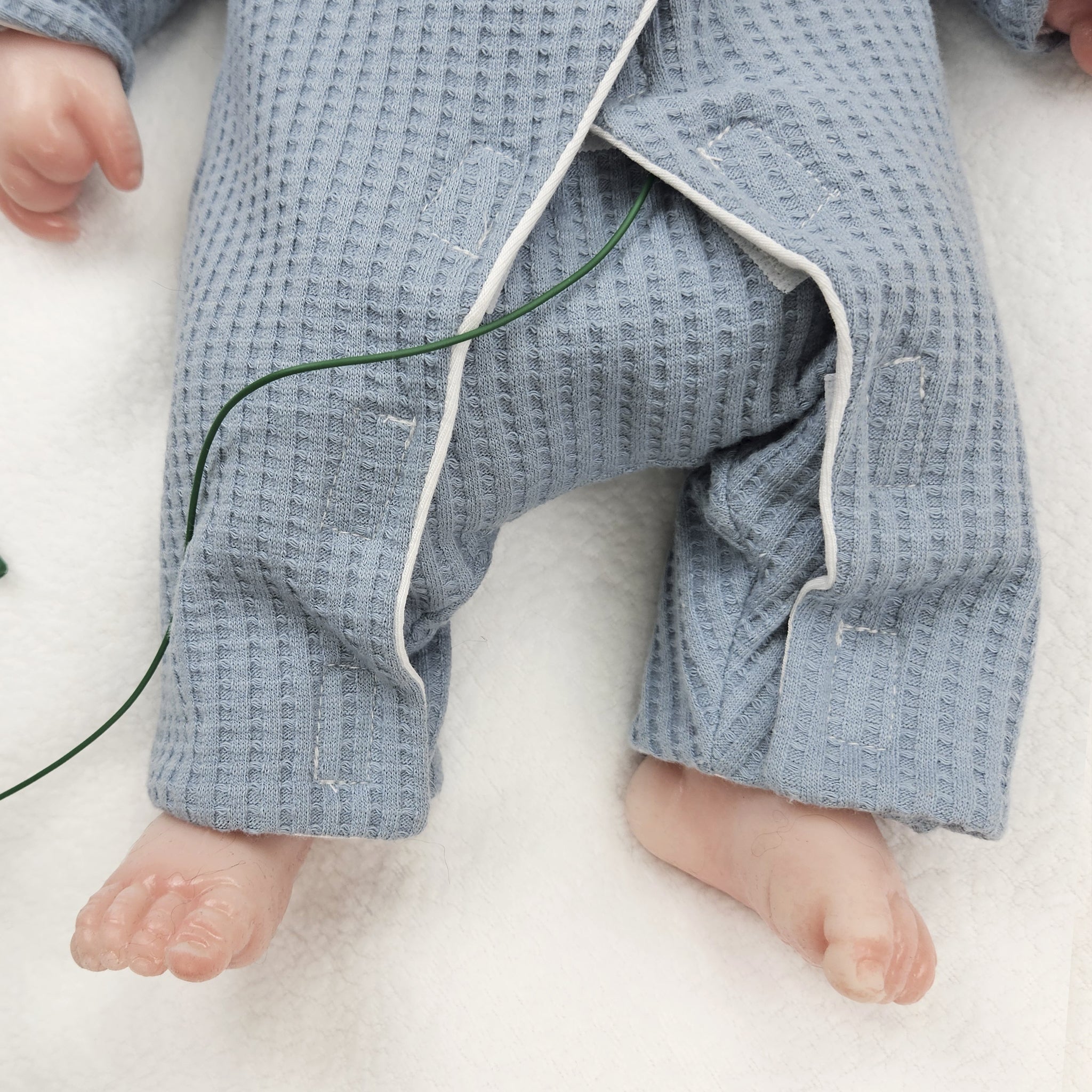 Unsere Frühchenkollektion wurde in Zusammenarbeit mit Ärzten und Pflegepersonal entwickelt und im Alltag erprobt. Unser Hauptaugenmerk lag nicht nur auf der Passform, sondern auch auf den pflegerischen und medizinischen Anforderungen. Mit unseren einfach zu handhabenden Schnitten ist es den Frühcheneltern möglich, die Pflege ihres Babys schon zu einem sehr frühen Zeitpunkt zu übernehmen. Durch die frühe Versorgung durch die Eltern kann viel schneller eine emotionale Bindung aufgebaut/ intensiviert werden, die das Risiko von Entwicklungsdefiziten beim Baby reduziert und traumatische Erfahrungen auf elterlicher Seite minimiert.