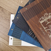 Unser Umschlag ist so gestaltet, dass er wie ein herkömmlicher Buchdeckel umgeschlagen kann, obwohl er voll aus Holz besteht (s. Detail-Beispielbild). Die Bindung an sich besteht aus fest verschraubten Buchbinderschrauben. Muss ein Blatt getauscht oder entnommen werden, kannst du diese mit einem herkömmlichen Schraubendreher lösen und wieder festschrauben. Den Buchdeckel niemals umschlagen und platt drücken, dies könnte die filigranen Schnitte brechen lassen.